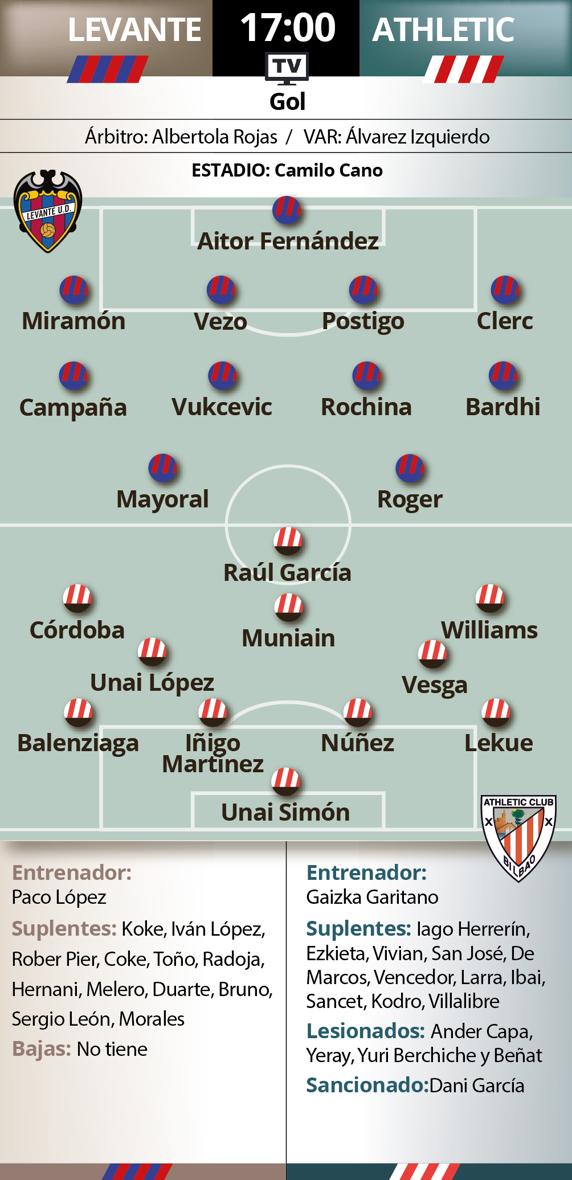 Si los de Garitano pierden, agur. De Marcos lo dejó muy claro el jueves: “Si no ganamos al Levante no tenemos nada que hacer”. Si empatan, necesitarían una concatenación de milagros en las dos jornadas finales del campeonato. Y si vencen en La Nucía se meterán de lleno en la pomada porque son los primeros de todos los aspirantes a la Europa League en salir a la palestra en esta jornada. Buena oportunidad para meter presión.