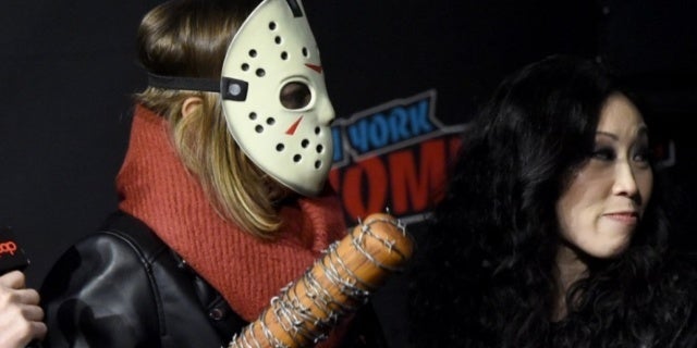 "Ella estaba sentada con esta máscara de Jason de Viernes 13, y ella estaba mirando – pensé que esta persona estaba mirando a Seth y a mí todo el panel. Pensé, 'Esto es espeluznante' ", dijo Marquand TV Insider. “No tenía idea de quién era ella, era extraño. Y luego, de repente, cuando Chris dijo: "Hey, ese es un gran cosplay, ¿por qué no subes al escenario?", Yo estaba como, "¿Estás seguro? Porque esta persona nos ha estado mirando de muerte a todo el panel ". [Risas] Y luego se quitó la máscara y me fui, oh, Dios mío, eso es increíble. Tenían una idea, supongo, de que ella iba a estar allí, pero no tenía idea.
