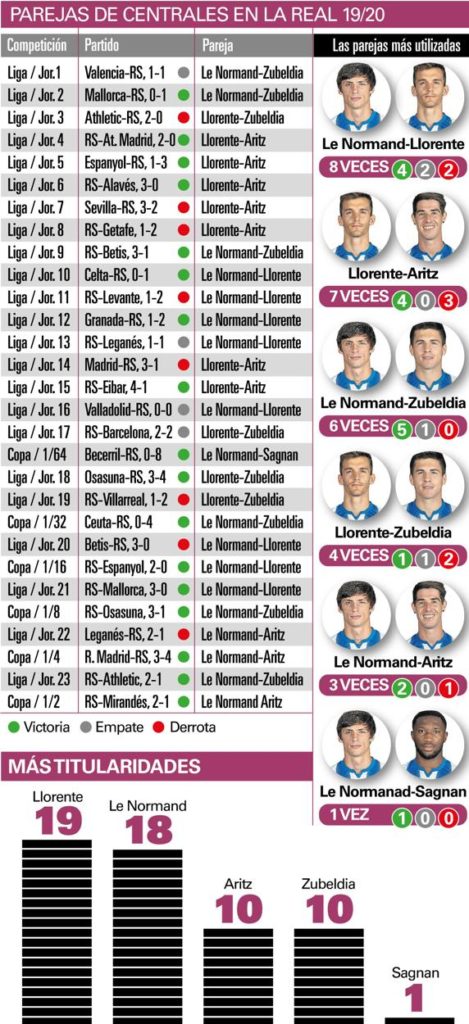 Llorente. La dupla de centrales compuesta por el galo y Zubeldia no conoce la derrota en seis encuentros. Las parejas de baile que menos se dejan ver al lado de Le