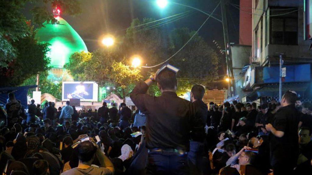 En la plaza de Chizar, en el norte de Teherán, donde se encuentra el famoso santuario de Ali Akbar, se congrega una multitud de hombres y mujeres de diferentes edades, vestidos de negro a partir de las 8 de la tarde y hasta pasadas las 2 de la madrugada.