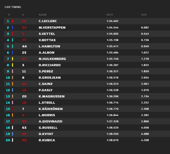 Kvyat, que montaba nueva unidad de potencia y que saldrá desde el fondo de la parrilla como Kubica, vio como su Toro Rosso se paraba a las primeras de cambio. Cabe recordar que además de las penalizaciones del ruso y el polaco, Verstappen, Gasly y Albon serán sancionados con 5 posiciones en parrilla por sustituir el ICE de su motor.
