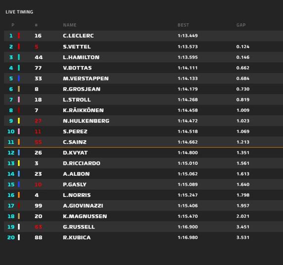 Si ya de por sí la zona media de la parrilla estaba igualada, más lo estará todavía con las nuevas actualizaciones llevadas por Racing Point, quien parece unirse a la fiesta por liderar la ‘Segunda División’ junto a Haas, Renault y McLaren tras presentar un paquete con muchos cambios que les ha hecho dar un gran salto hacia adelante. Tanto es así que Stroll puso ser séptimo a 8 décimas de Charles, solo superado por un Grosjean que en su Haas no montó las novedades que sí llevó Magnussen y que por el momento no funcionaron.