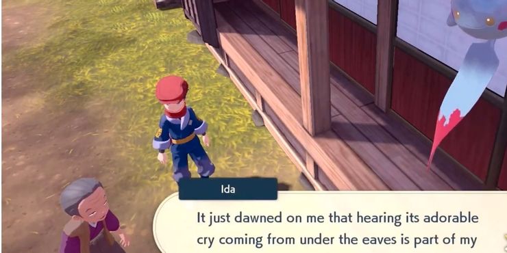 Atrapar Pokémon Shiny raros en Leyendas: Arceus atrae a los coleccionistas, pero At Home Under The Eaves ofrece un tipo diferente de recompensa emocional. Ida sugiere que la brisa cerca del mar podría ser mejor para Chimecho, pero el Pokémon rechaza la ubicación aislada porque está demasiado lejos de los aldeanos. Ida vuelve a empatizar, observando que Chimecho prefiere “lugares animados”, tal como lo hace ella. Pocos lugares son más animados en Jubilife que el campo de entrenamiento, pero cuando se le pide que entrene con otros Pokémon, Chimecho se da la vuelta porque, yendo contra la corriente de la serie, “A Chimecho no le gusta pelear.” Ida entiende, diciendo: “Yo Supongo que es natural que a algunos Pokémon no les guste pelear. Siento asustarte, Chimecho.” La sugerencia final es la casa de al lado, ya que debería proporcionar el mismo confort que la de Ida. En este punto, Ida y Chimecho llegan a la misma conclusión, y ella concluye que, después de todo, le gustaría que Chimecho se quedara con ella y dice: “Me acabo de dar cuenta de que escuchar su adorable grito debajo de los aleros es parte de mi rutina ahora.!”