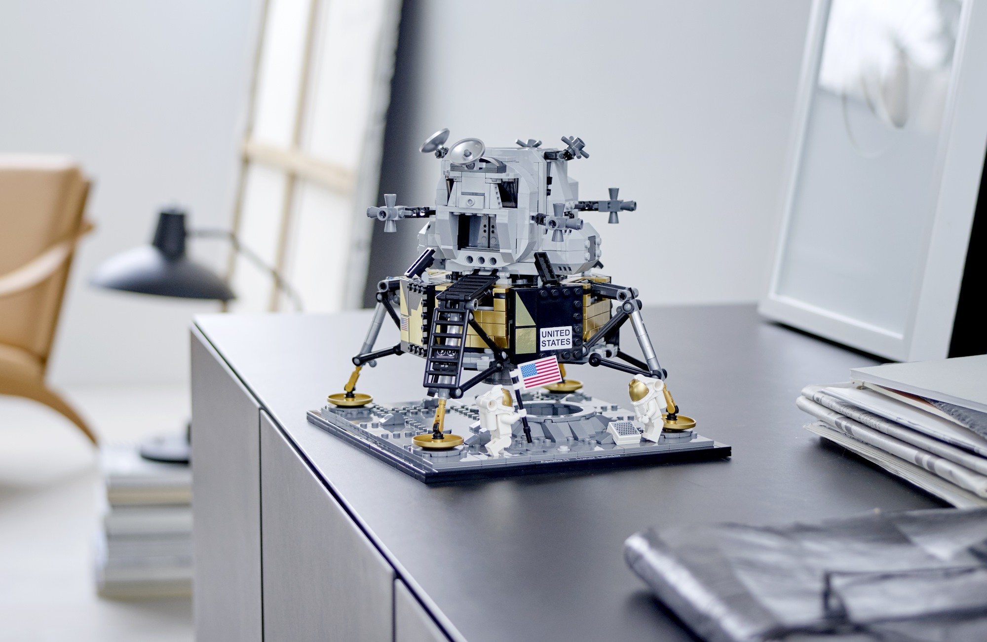 El conjunto de Apolo 11 parece un verdadero placer para los niños y padres amantes del espacio, y los abuelos, que recuerdan o veneran las misiones históricas. LEGO trabajó con la NASA para armar una replica del módulo de aterrizaje Eagle que se parece mucho al original, aunque un poco más pequeño, por supuesto.