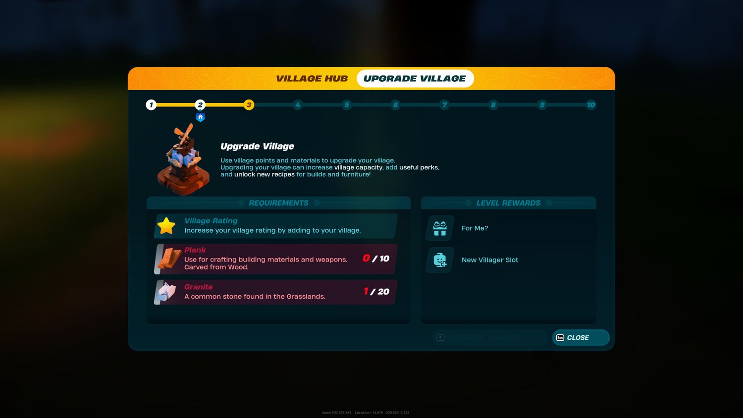 Para mejorar tu aldea, Tendrás que crear y gastar materiales para comprar tu próxima actualización.. La primera actualización requiere 15 de madera y 15 de granito, lo cual es bastante económico, pero puede esperar que los costos aumenten sustancialmente a medida que se expande hacia afuera. No desbloquearás un espacio para un aldeano cada vez que actualices, pero hay muchos otros beneficios útiles que hacen que las mejoras de aldea sean esenciales.