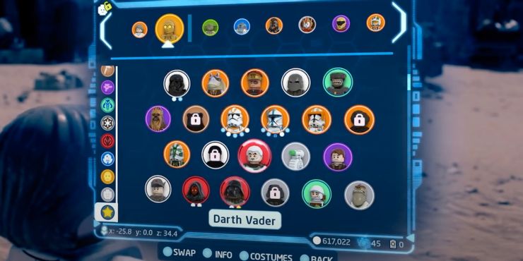 Durante el modo Galaxy Free Play, los jugadores pueden intercambiar libremente entre personajes presionando el botón de pausa y navegando a la segunda pestaña desde la izquierda. Luego, pueden usar las dos ranuras más a la izquierda para seleccionar dos personajes que aparecerán en la pantalla al mismo tiempo, lo que puede generar algunas interacciones divertidas e interesantes según los personajes que se elijan. A la derecha de esos espacios, los jugadores verán círculos de diferentes colores que representan las diferentes clases. Los jugadores pueden usarlos para configurar sus personajes favoritos en Lego Star Wars: Saga de Skywalker de cada categoría para cambiar fácilmente a ellos cuando sea necesario.
