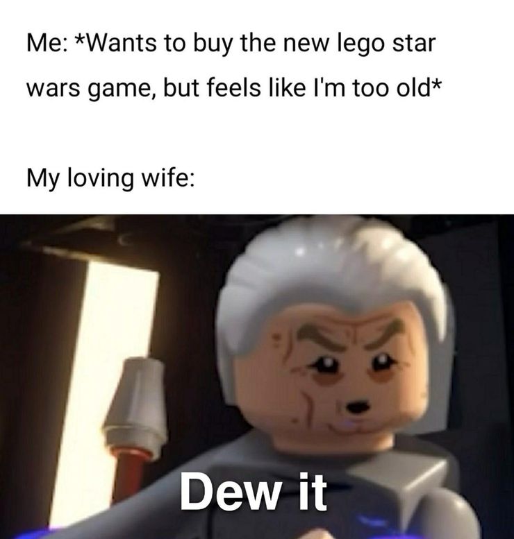 La franquicia ha existido durante casi dos décadas, pero esa no es razón para dejar de jugar cualquiera de sus títulos justo cuando realmente comienza la diversión. Como sugiere este meme, sé como Palpatine y simplemente, “Dew It”. Incluso Old Ben se armó lo suficiente como para emprender una cruzada idealista en el Episodio IV, y con LEGO Star Wars: La saga Skywalker, también los fanáticos de toda la vida.