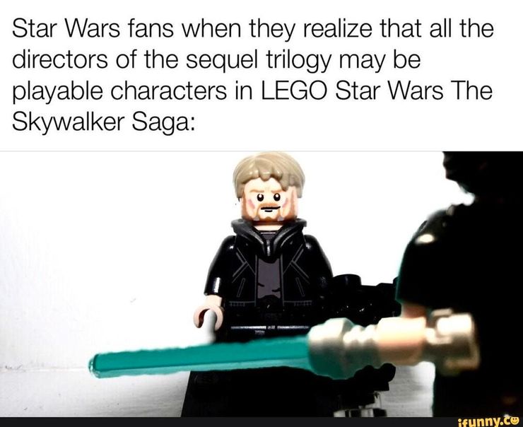Con su inclusión, los fanáticos habrían podido descargar todas sus frustraciones con sus películas en sus minifiguras, quizás ganando un poco de catarsis en el proceso. Esto nunca sucedió, por lo que los memes (como este con Rian Johnson, el director del Episodio VIII) son lo más cercano que tendrán los fanáticos.