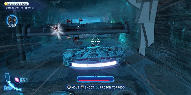 - Minikit #1: Los jugadores pueden obtenerlo disparando a un TIE Fighter especial. Tienen un brillo blanco a su alrededor, como en la imagen de arriba.