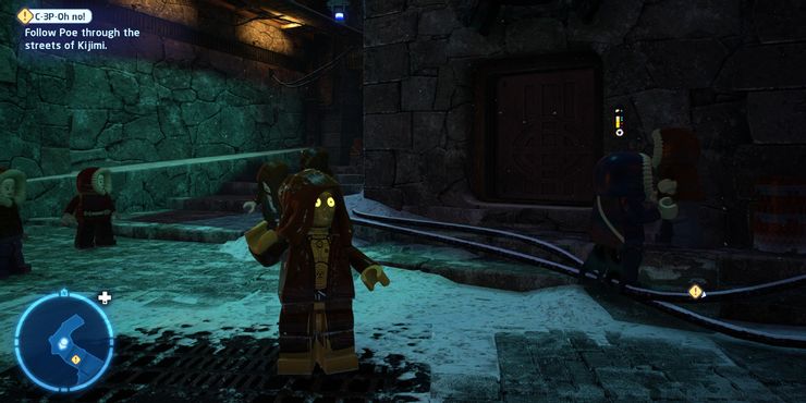 - Minikit #4: Después de conocer a Zorii Bliss, Rey fuerza a abrir la puerta. En el patio más allá hay una puerta que la granada de un villano puede abrir, y contiene un minikit. Está en el lado derecho cuando los jugadores ingresan al patio.