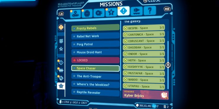 La recompensa por encontrar los 10 barcos es 5 Kyber Bricks, que se pueden usar para mejorar la clase principal y de personaje en LEGO Star Wars: La saga Skywalker. Los Kyber Bricks son los coleccionables más comunes, con 1166 para encontrar a lo largo del juego. Sin embargo, algunas de las habilidades de tercer nivel y las mejoras de salud son costosas, por lo que es necesario reunir muchos Kyber Bricks para comprar todas las habilidades disponibles.