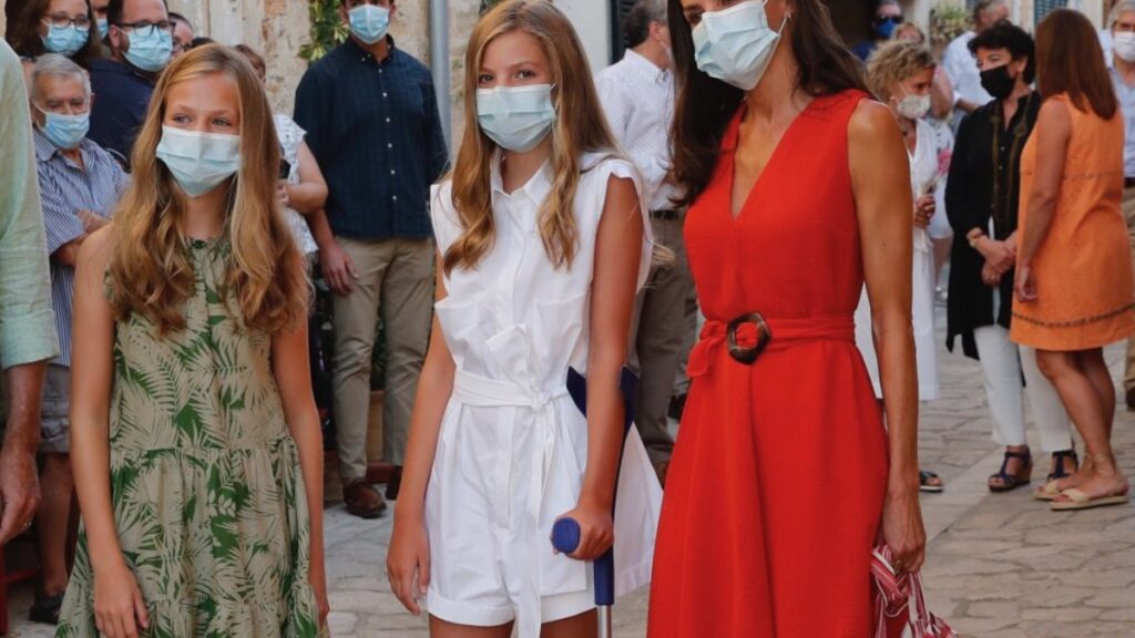 En color rojo, el preferido de la reina Letizia. Este vestido tiene un aire muy versátil. Perfecto para las vacaciones, Leonor hubiera conjuntado perfectamente con su madre y destacado con una Sofía lesionada y amante del color blanco.