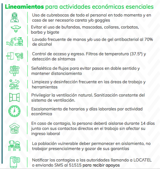 Reapertura de al menos 18 mil 560 empresas. Uso de crubrebocas de todo el personal, lavado frecuente de manos, controles de acceso y egreso, entre las medidas a tomar.