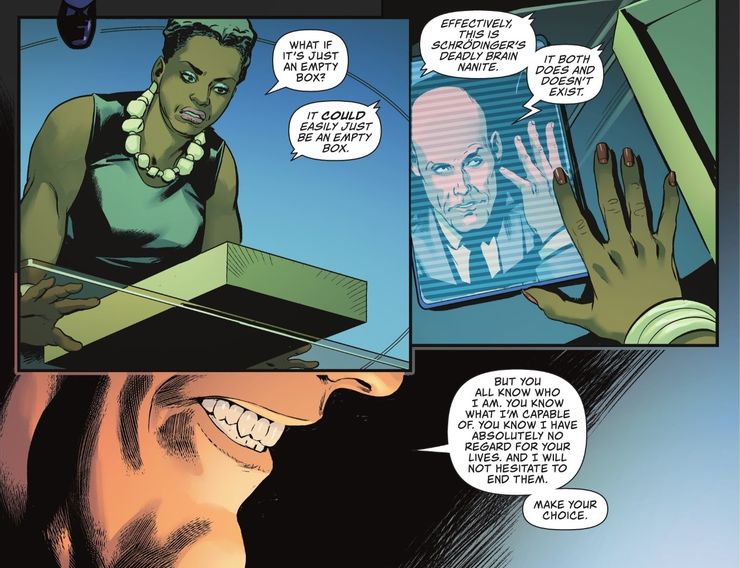 Este es el último movimiento de poder de Lex, y muestra perfectamente que la reputación que se ha ganado a lo largo de los años se ha convertido en su mejor arma. Es casi más malvado y astuto si no envió los nanites, lo que significa que Lex acaba de obtener 1.700 millones de dólares de cada uno de sus rivales y se establece como su superior una vez más usando nada más que algunas cajas vacías y un puñado de palabras. No solo eso, Lex no pierde el tiempo comprando el edificio más alto de Metrópolis y poniendo su nombre en él (para gran irritación del nuevo Superman).