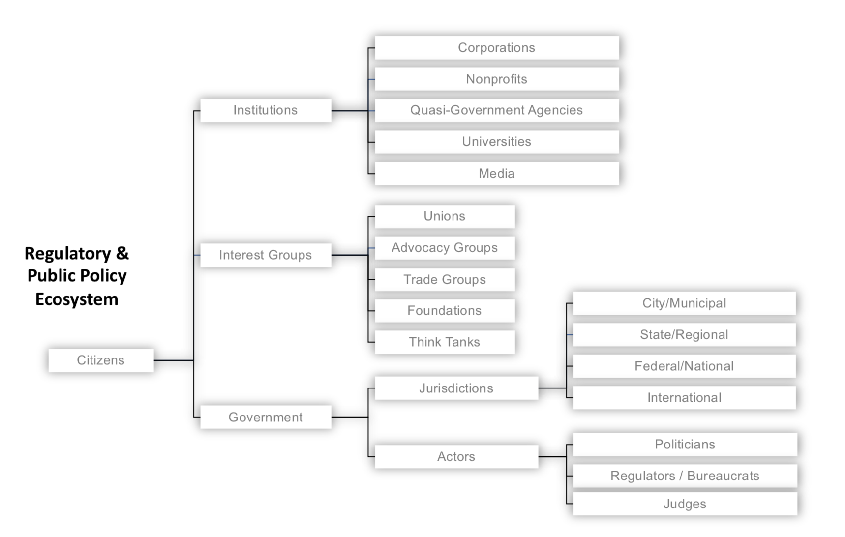 Las startups son mas Una especie en un complejo ecosistema normativo y de políticas públicas. Este ecosistema es más grande y más dinámico que lo que muchos fundadores aprecian, con leyes distintas pero que se superponen a nivel federal, estatal y local / ciudad, todo en contra de una amplia gama de intereses públicos y privados. Donde los fundadores de nuevas empresas ven la oportunidad de perturbarse en los mercados regulados, los abogados consultan con prudencia: existen regulaciones para promover ciertos objetivos de políticas públicas fuertemente sostenidos que (a diferencia del modelo de negocios de su empresa) tienen fuerza de ley.
