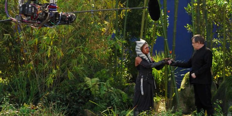 Se muestra en la Galería de Disney, El libro de Boba Fett Las imágenes detrás de escena revelan a Luke Skywalker de Mark Hamill sin CGI, junto a Ahsoka Tano (Rosario Dawson) y Grogu. Habiendo regresado por primera vez en el mandaloriano final de la temporada 2, Luke Skywalker regresó una vez más en El libro de Boba Fett episodio 6, que continuó después de su episodio anterior con él entrenando a Grogu en los caminos de la Fuerza. Igual de sorprendente fue la presencia de Ahsoka junto a ellos, uniendo al hijo de Anakin Skywalker con su ex padawan.