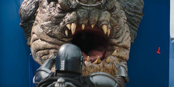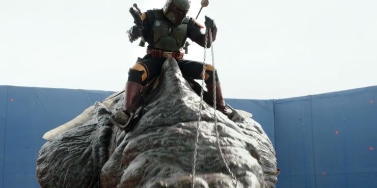 Del mismo modo, el rencor en El libro de Boba Fett también cobró vida mezclando CGI con efectos prácticos, porque los creadores no querían simplemente que fuera una pantalla verde, sino que Boba Fett de Temuera Morrison realmente pudiera montar en un rancor. Se creó una cabeza gigante para el efecto, y luego se agregó CGI, lo que significa una combinación de los dos que encaja con el enfoque histórico de Star Wars para usar efectos prácticos siempre que sea posible.
