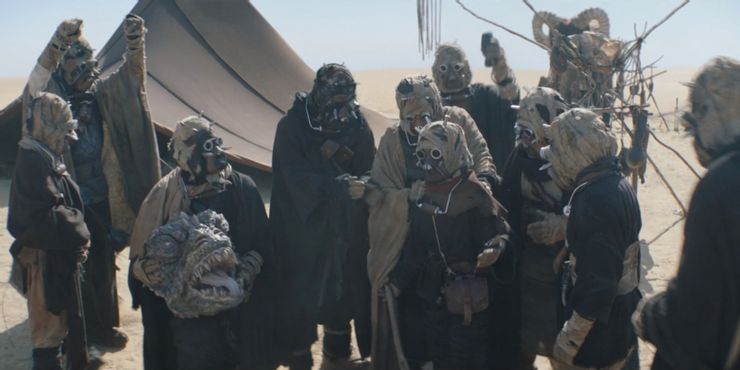 Se demostró que la tribu Tusken Raider de Boba Fett fue trágicamente masacrada en uno de los flashbacks del episodio 3. Mientras que los Kintan Striders se atribuyeron el mérito de la masacre, Fennec Shand expresó su escepticismo ante la idea de que una banda de swoops matara a toda una tribu de Tusken Raiders, que son guerreros mortales. Los Kintan Striders probablemente fueron asistidos por otra banda criminal, y los principales contendientes son el Pyke Syndicate y posiblemente los restos del imperio criminal de Jabba the Hutt bajo el mando de Bib Fortuna. En cualquier caso, es probable que la venganza de Fett por la muerte de la tribu aún no se haya completado.