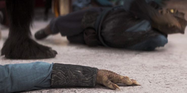 El despiadado cazarrecompensas wookiee, Black Krrsantan, ataca a un grupo de trandoshanos en la cantina de Garsa Fwip, aparentemente sin razón aparente. A pesar de los mejores intentos de Fwip por calmar la situación, Krrsantan le arranca el brazo a un trandoshano antes de irse. En ambos Guerra de las Galaxias continuidades, los wookiees y los trandoshanos tienen una relación extremadamente antagónica, aunque esto se amplía mucho más en la línea de tiempo original. En el universo de Legends, los trandoshanos tienen un historial de esclavizar a los wookiees y matarlos por sus pieles, y aunque esto no se muestra tan explícitamente en el canon, es probable que siga siendo así. Cualquier wookiee, incluso individuos menos brutales que Black Krrsantan, probablemente mostraría una hostilidad similar hacia los trandoshanos.
