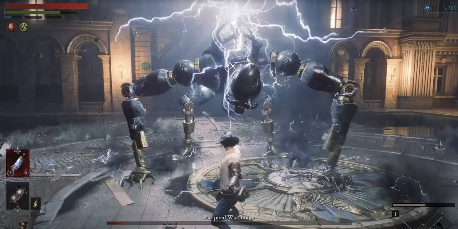 Uno de los primeros jefes más difíciles con los que luchas. Mentiras de P es Scrapped Watchman, un títere policial gigante cargado de electricidad que puede ser muy difícil de vencer. Dividido en dos fases distintas, tendrás que dominar el movimiento de Pinocho y esperar el momento perfecto para atacar. El equipo limitado que tienes en este punto del juego te brinda solo unas pocas opciones para derrotar a este autómata gigante.