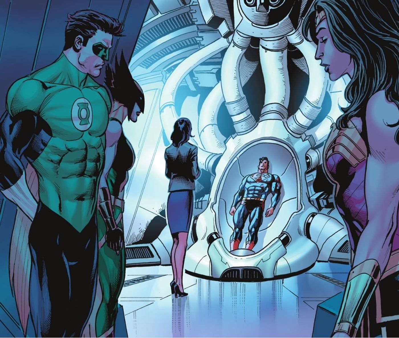 En un adelanto de Liga de la Justicia contra Godzilla contra Kong # 5 Por Brian Buccellato, Christian Dulce y Tom Derenick, Superman todavía se está recuperando del ataque de Godzilla. Después de que Lois Lane pide ayuda a Mercy Graves, Lois recibe archivos de la oscura organización Monarch.