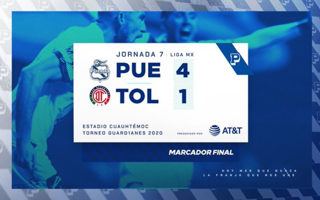 Puebla remontó y goleó este viernes 4-1 a Toluca en el inicio de la séptima jornada del torneo Guard1anes de la Liga MX.