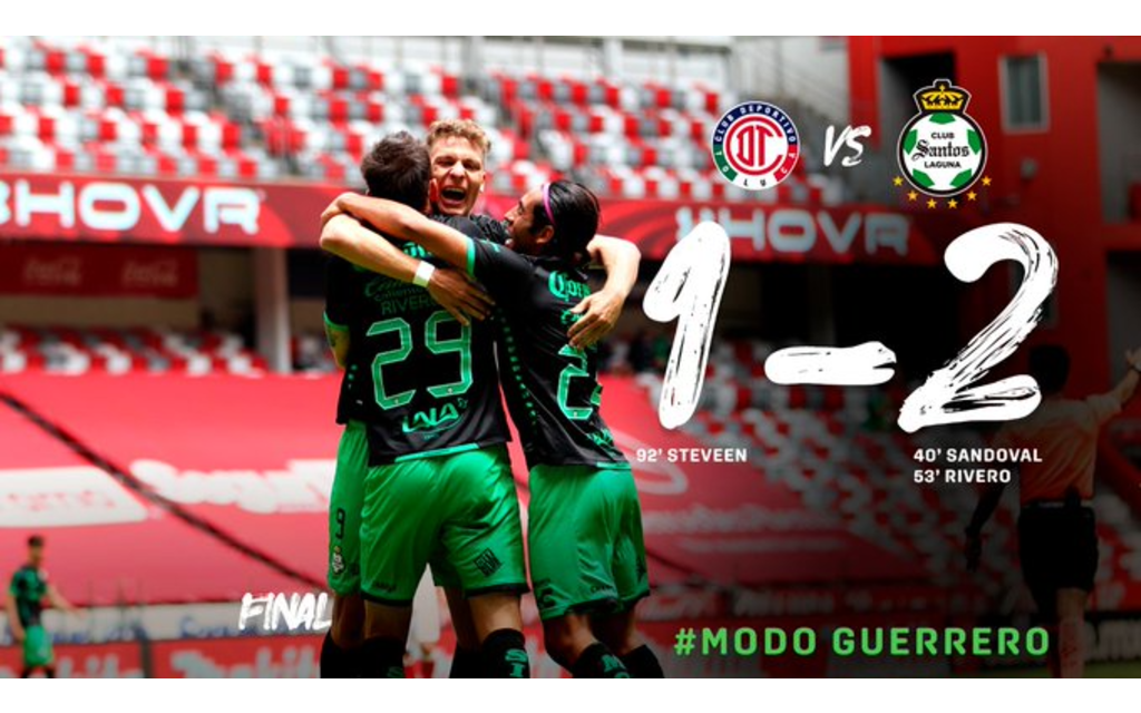 Los laguneros impusieron condiciones en el primer tiempo, con buena posesión de balón y al menos tres llegadas que parecían para gol; la primera fue de Octavio Riveros y después vino una de Fernando Gorriarán, que pasó apenas por un costado de la meta toluqueña, y otra de Matheus Doria, cuyo cabezazo forzó a Luis García a un excelente despeje.