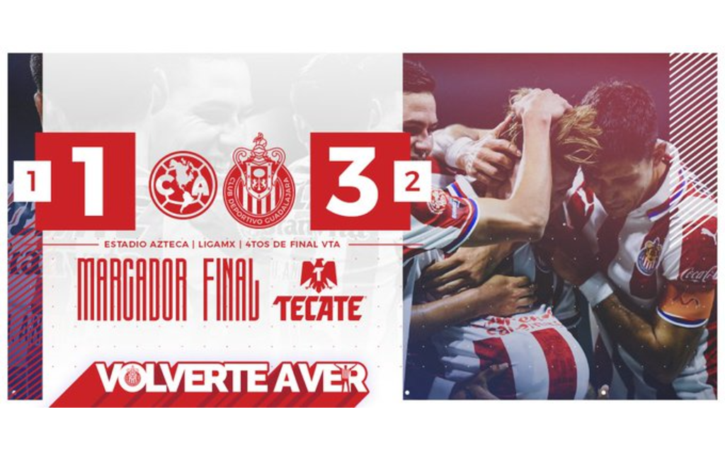 Con dos golazos de Cristian Calderón, Guadalajara dio la campanada y eliminó 2-1 (3-1, global) al América, encuentro de vuelta de Cuartos de Final, celebrado este sábado en el Estadio Azteca.
