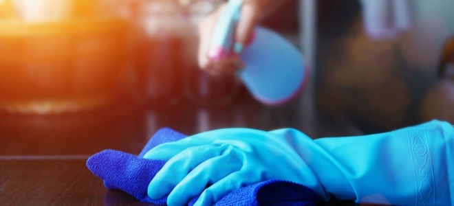 Además de utilizar los productos adecuados, asegúrese de implementar los procedimientos adecuados. El CDC recomienda limpiar las superficies de uso común al menos una vez al día, incluidas las mesas de madera y los respaldos de las sillas, los lavabos, los grifos, los interruptores de luz, los controles remotos y las perillas de las puertas. Utilice guantes desechables mientras limpia cualquier espacio utilizado por una persona enferma, incluidas sábanas, ropa, toallas, etc. Deseche los guantes después de desinfectarlos.