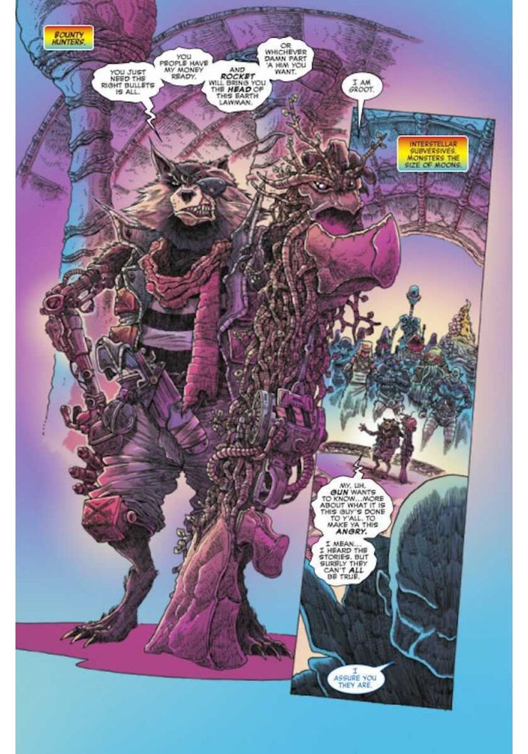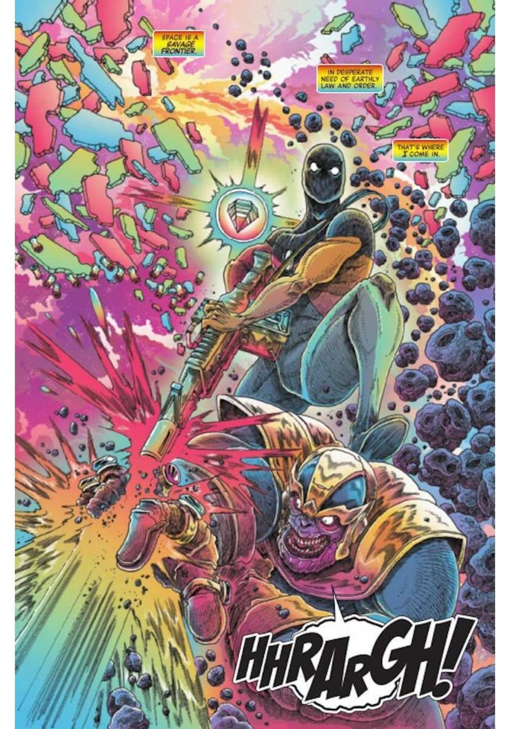 Héroes renacidos El # 1 mostró a Thanos evitando la muerte y luchando contra el Doctor Spectrum con sus Infinity Rings. Sin embargo, las vistas previas de Héroes renacidos # 4 por Jason Aaron, James Stokoe y Ed McGuinness (H / T Superherohype) muestran una revancha entre la pareja (aunque podría ser un flashback) donde Spectrum muestra una estrategia eficiente para detener a Thanos. Spectrum claramente se ha ganado algunos enemigos en toda la galaxia, ya que Rocket Raccoon y Groot son contratados por Kree y Skrulls para matarlo. Mientras tanto, el Vigilante, que fue cegado por el Doctor Spectrum, trae sus propias fuerzas para detenerlo.