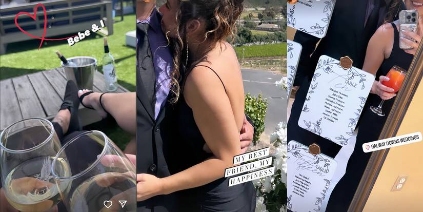 Liz y Jayson visitaron la bodega Altisima, ubicada en la región vinícola del valle de Temecula. Ella compartió una foto de ellos brindando vasos con la leyenda: “Bebé y yo.” Ella dijo que era la semana de su cumpleaños además de ser una “domingo divertido.” Sin embargo, una de sus Historias de Instagram fue una selfie en el espejo que Liz se tomó con su novio. Ella etiquetó la ubicación como “Bodas en Galway Downs.Pegado al espejo había un plano de asientos para la boda. Uno de los Las mesas, numeradas 10, tenían dos nombres: “Jason Zúñiga” y “Liz Zúñiga.“