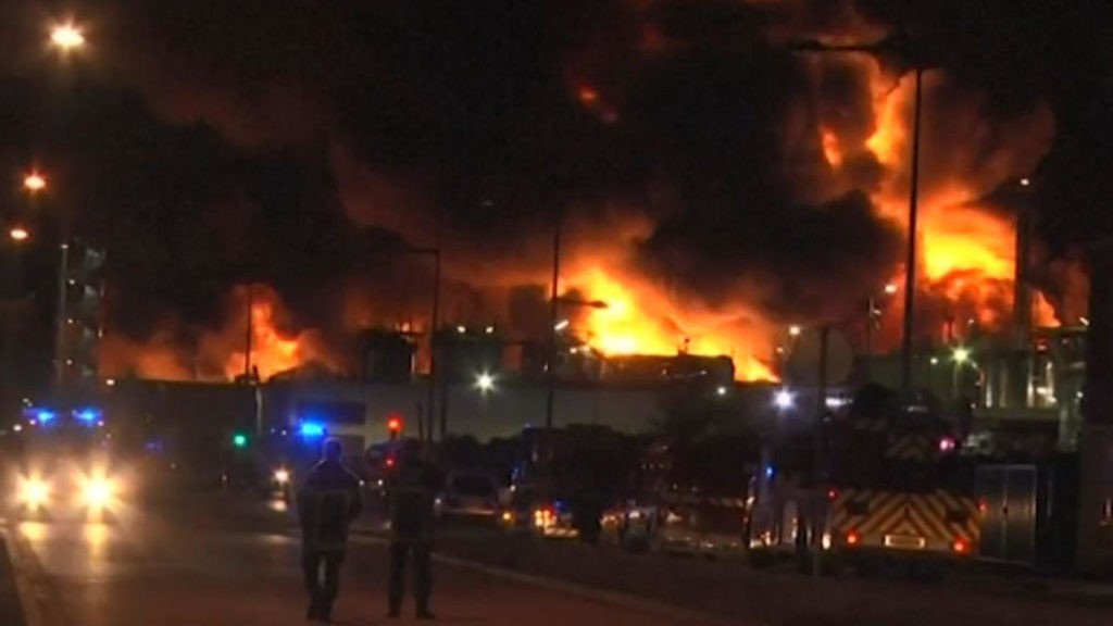 Las imágenes en la planta durante la noche mostraban llamas naranja y el sonido de explosiones. Después del amanecer seguían alzándose grandes columnas de humo negro y todavía se podían ver algunas lenguas de fuego.