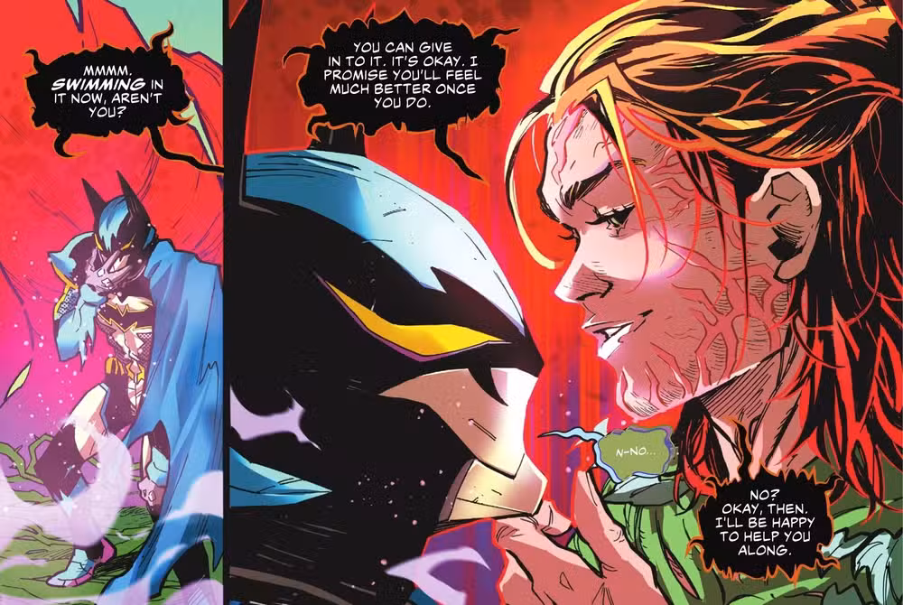 Los lectores se han mantenido en suspenso en cuanto a qué villanos legendarios se estaban rediseñando para cada número, y mientras Batman desciende a un planeta hostil y cubierto de maleza en Leyendas inmortales‘ cosmos, el escenario está perfectamente preparado para una nueva visión de la Dra. Pamela Isley. En cambio, un hombre desconocido emerge del bosque y lanza una lanza envenenada directamente al hombro de Batman. Revelándose como el antes mencionado “Hombre Envenenado”, se afianza oficialmente la transformación en un ser de enredaderas y vegetación.