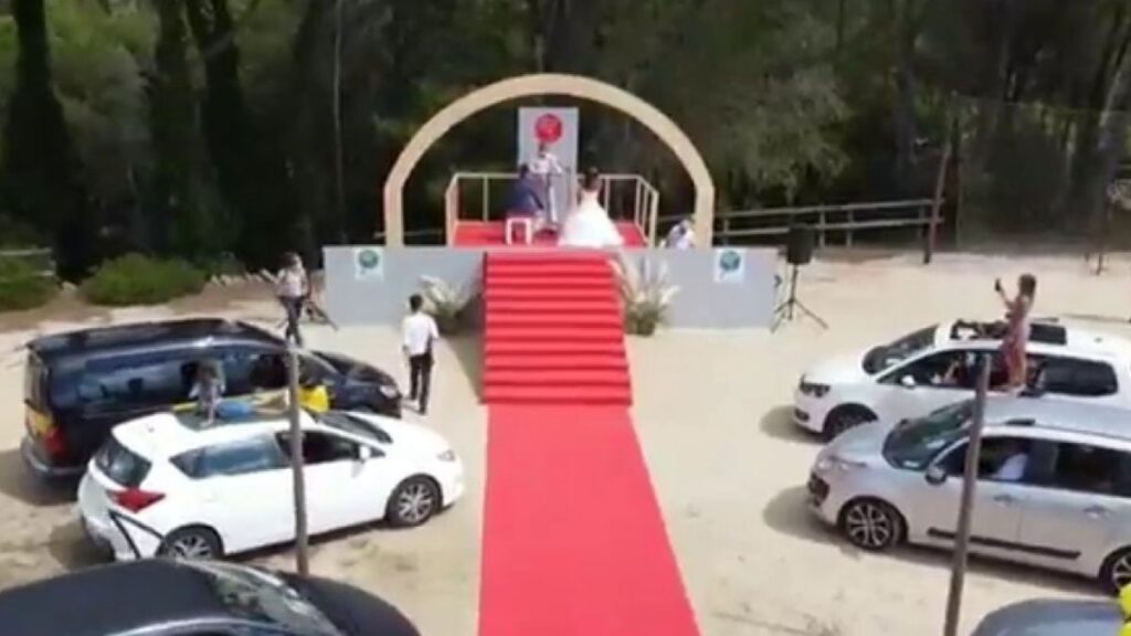 Si no sabes de qué estamos hablando, es algo así como los «autocines», solo que en vez de ver una película, asistes a una ceremonia. Esta es la alternativa que han escogido Nuria y Jaume para casarse. Tuvieron que retrasar el enlace durante el Estado de Alarma, y ahora han decidido celebrarlo así.