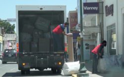 Personal de una empresa de paquetería realiza labores de descarga en la zona centro de Hermosillo. Crédito: Ramsés Baduqui/ El Malpensado