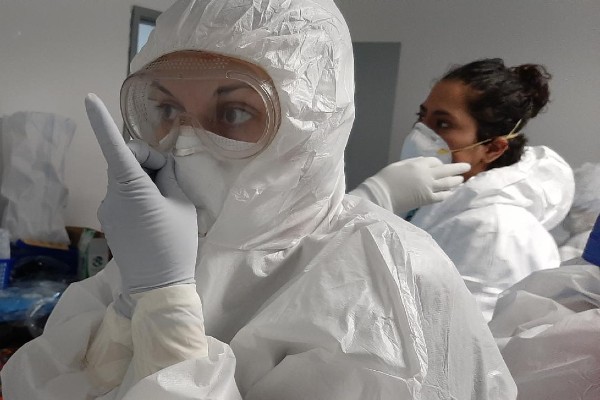 “Siempre nos dijeron que teníamos que estar preparadas para en cualquier momento apoyar a las compañeras que están en el servicio, más porque ya es un hospital de pacientes Covid, y llegó el día en que te dicen ‘¿sabes qué? Te bajas y vas a apoyar. Y sí, el primer día me dijeron ‘aquí está tu traje, aquí está tu uniforme, por favor apóyanos’, y yo en shock”, cuenta.