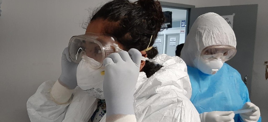 “Siempre nos dijeron que teníamos que estar preparadas para en cualquier momento apoyar a las compañeras que están en el servicio, más porque ya es un hospital de pacientes Covid, y llegó el día en que te dicen ‘¿sabes qué? Te bajas y vas a apoyar. Y sí, el primer día me dijeron ‘aquí está tu traje, aquí está tu uniforme, por favor apóyanos’, y yo en shock”, cuenta.