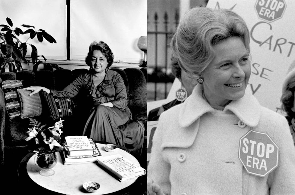 La mística de la feminidad, que analiza pormenorizadamente la insatisfacción del ama de casa norteamericana de los cincuenta, condenada a vivir con la contradicción de su aparente y obligada felicidad –la felicidad de los anuncios de electrodomésticos– y la desesperación y frustración real de una vida que consiste, básicamente, en servir, colocó, en menos de un año, un millón de ejemplares, y se convirtió en el libro más vendido de no ficción de 1964 en Estados Unidos. Las ideas de Friedan, sin embargo, no tardaron en encontrar contrincante. Ese mismo año, Phyllis Schlafly, la ultraconservadora futura líder del movimiento Stop ERA y fundadora del movimiento Eagle Forum, además de mano derecha del entonces aún aspirante a presidente Ronald Reagan, publicó A Choice Not An Echo, un volumen autoeditado del que vendería tres millones de ejemplares.
