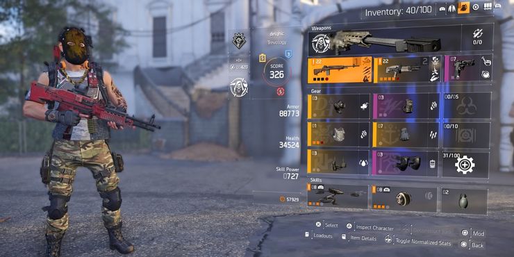 Hay muchas cosas para actualizar La división 2, incluidas armas, armaduras, habilidades (drones, torretas, etc.), especializaciones (ballesta, lanzagranadas, etc.), estadísticas, vigilancia SHD y más. Al principio, esto puede parecer abrumador para los recién llegados, pero con el tiempo, estas actualizaciones y estadísticas se vuelven una segunda naturaleza. Las estadísticas del equipo, así como los parámetros de construcción, están a la vista y son de fácil acceso en el menú de inventario. Por ejemplo, la armadura de pecho que coincide con botas de la misma estructura muestra a los jugadores cuántas piezas de ese conjunto se requieren para ciertas bonificaciones (por ejemplo, 3 piezas necesarias para un 20% más de daño de habilidad).