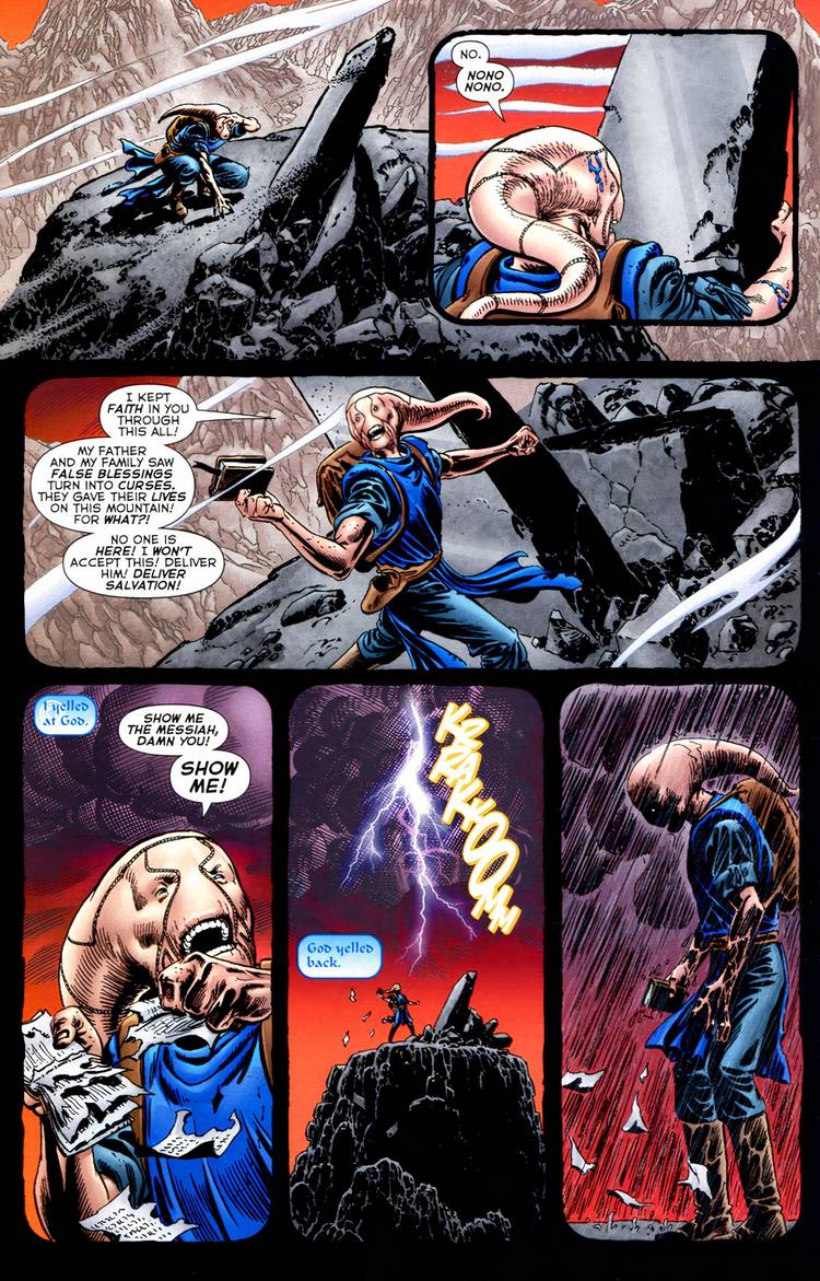 El descubrimiento de que no existía un gran Mesías enfureció a Bro’Dee, y exigió a su Dios que respondiera por esto y le mostrara el Mesías que había buscado. La lluvia empezó a llover a cántaros y, en el reflejo de los charcos, Bro’Dee se vio a sí mismo. Se dio cuenta de que él estaba destinado a ser el Mesías. Luego regresó a su casa y comenzó a predicar sus enseñanzas, y aunque tomó un tiempo, finalmente la gente comenzó a escuchar, creyendo en la esperanza que tenía Bro’Dee Walker. Sorprendentemente, el sol que una vez amenazó con destruir el planeta se volvió azul y el planeta se salvó.