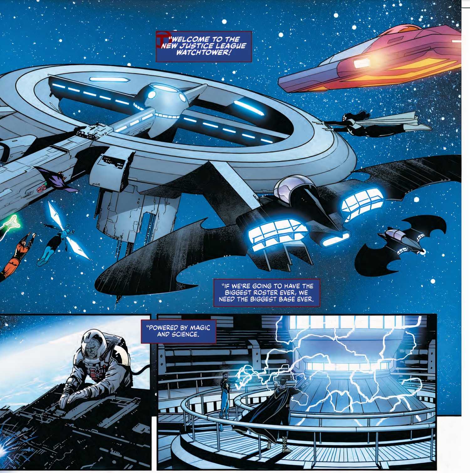 Narrado desde la perspectiva de Superman, La nueva Atalaya se presenta como la Liga “la base más grande jamás vista” combinando magia y tecnología para crear un lugar donde las mejores mentes del DCU pueden colaborar. Superman enumera varias características de la nueva sede, incluidos Boom Tubes para un transporte rápido a las misiones, comunicaciones establecidas por Barbara “Oráculo” Gordon y seguridad encabezada por The Question. Con el debut de esta base mejorada, la Liga de la Justicia obtiene una base poderosa que la posiciona para crecer más fuerte que nunca.