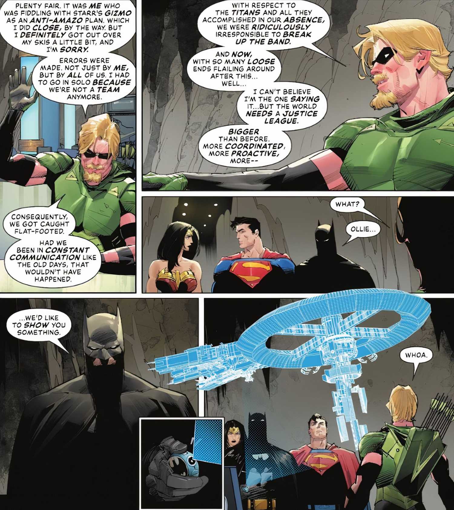En casa de Tom Taylor Mundo Bestia saga, Amanda Waller tomó el control del Salón de la Justicia, rebautizándolo como Salón del Orden, dejando a la Liga de la Justicia sin base cuando se vieron obligados a reunirse durante el evento de crisis. Poder absoluto. Poder absoluto El número 4, el último número del evento de crisis dirigido por Mark Waid y Dan Mora, terminó con Batman revelando los planos de una nueva Atalaya, insinuando los planes de la Liga de la Justicia de reunirse con una nueva base de operaciones. Los fanáticos ahora han visto este avance hacerse realidad con el debut oficial de la nueva Watchtower en el “Alfa” la mitad de DC TODO EN ESPECIALescrito por Joshua Williamson e ilustrado por Daniel Sampere.