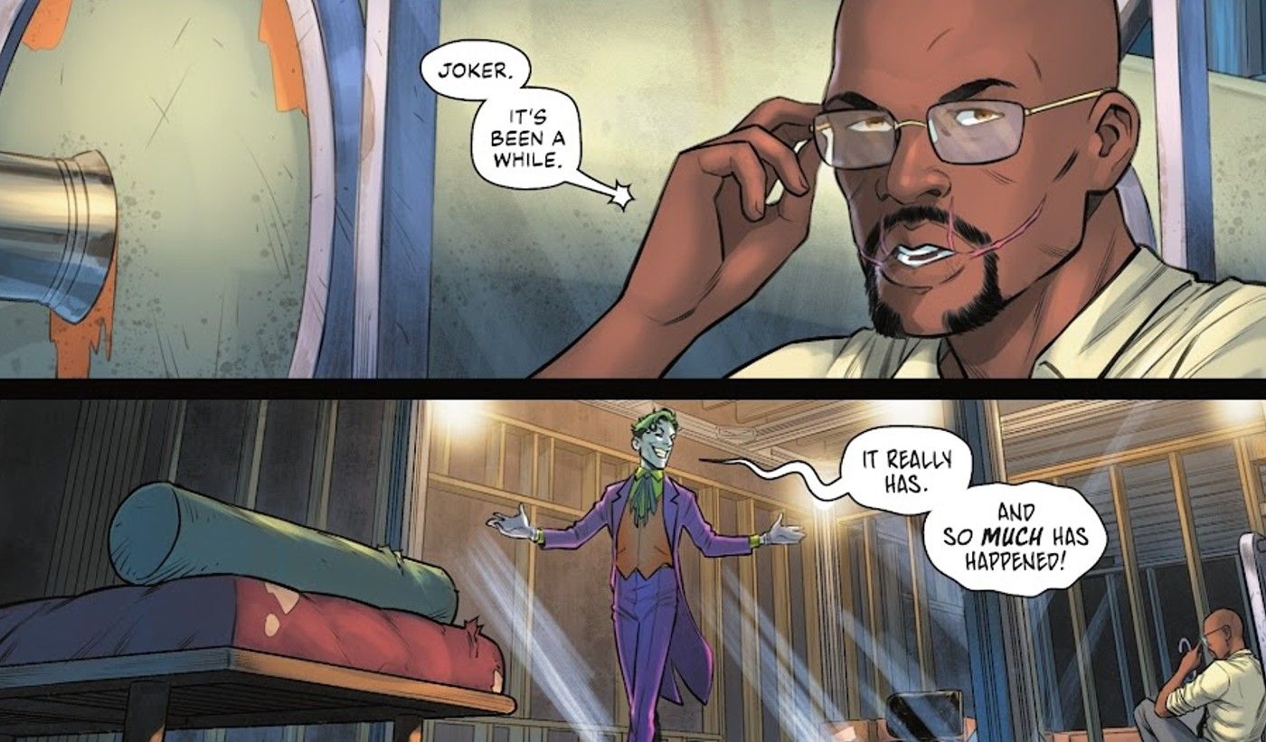 El Joker revela su sorprendente nuevo terapeuta en la historia “Doctor’s Orders” de Chip Zdarsky y Michele Bandini de hombre murciélago #145. En esta historia de respaldo, el Joker capturó al Dr. Captio y lo mantiene en su sótano. Cada vez que Joker se encuentra con Batman, regresa con Captio y escucha mientras el médico le da consejos sobre cómo lidiar con Batman.