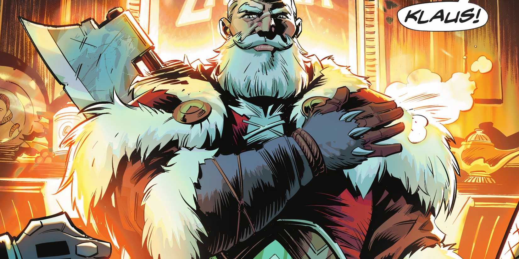 Los héroes del Universo DC finalmente conocieron a Kris Kringle en su primer cruce canónico con la Liga de la Justicia en la edición del año pasado. Batman/Papá Noel: Caballero Silencioso. El mundo estaba bajo el ataque de Krampus, quien desató un ejército de monstruos conocidos como Draug, con la intención de vengarse de Klaus y sus vacaciones. Todos se sorprendieron al ver que Santa no sólo era real, sino que podía luchar contra monstruos tan bien como cualquier miembro de la Liga de la Justicia. Pero nadie estaba más cautivado por Santa que Robin.quien culminó la aventura dando un auténtico paseo en trineo con San Nicolás.