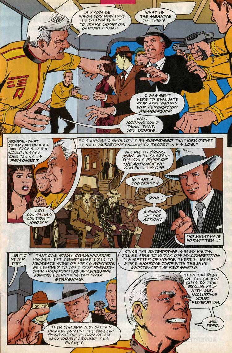 1998’s Star Trek Unlimited #10 presenta la historia “A Piece of Reaction”, escrita por Michael A. Martin y Andy Mangels, con arte de Ron Randall. En el tema, el Capitán Picard y la Enterprise-D regresan a la casa de los iotians, los extraterrestres “Gangster” introdujeron en La serie original.