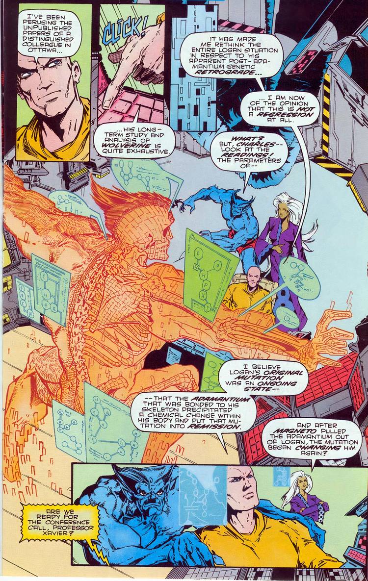Feral Wolverine es en lo que se convirtió Logan después de que le quitaron el adamantium de su cuerpo. Como lo confirma Charles Xavier en Glotón #91, El adamantium en realidad estaba frenando la mutación de Logan.. El cuerpo de Wolverine estaba en un estado constante luchando contra el envenenamiento por adamantium y, como resultado, impidió la progresión natural de la mutación de Logan. Cuando Wolverine se volvió Feral, se había convertido en lo que siempre debió ser: un animal.