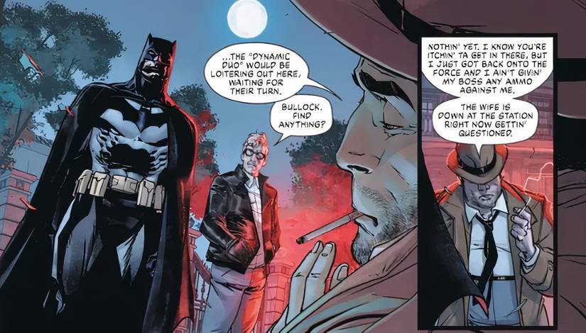 Este nuevo equipo entre Batman y Gordon también es significativo ya que los devuelve a sus raíces. Gordon debutó por primera vez en Cómics de detectives #27 (1939) de Bob Kane y Bill Finger, junto a Batman, lo que lo establece como el primer aliado del Caballero Oscuro. Esto podría sorprender a algunos que asumieron que los primeros aliados de Batman fueron Alfred Pennyworth o Dick Grayson. Sin embargo, Robin no apareció hasta Cómics de detectives # 38 (1940), y Alfred se unió incluso más tarde en Ordenanza #16 (1943). Con esta historia en mente, el comentario de Bullock casi parece apropiado, llamando a Gordon y Batman los “Dúo dinámico” dado que eran el dúo original de lucha contra el crimen.