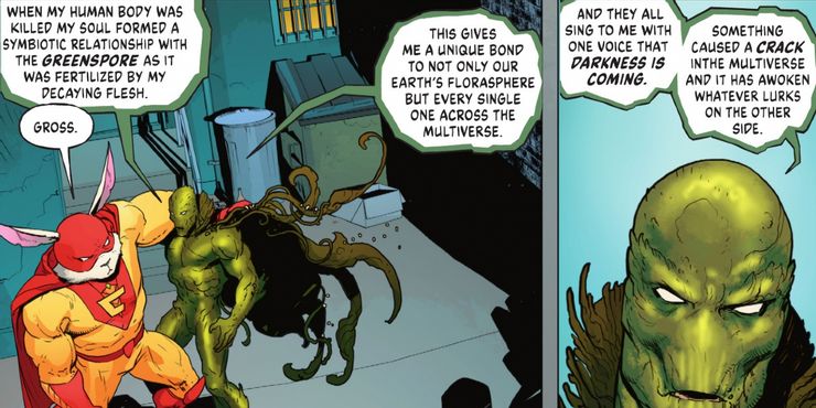 En Justice League Incarnate # 3, los lectores conocen a Spore, la versión definitiva de Swamp Thing que puede comunicarse a través del multiverso.