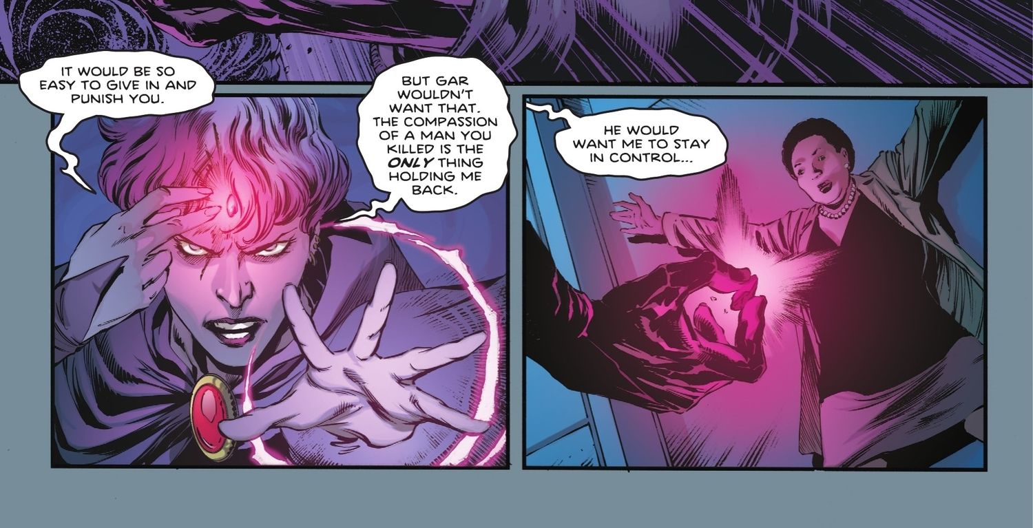 Como parte del proceso de duelo de Raven, ella admite que quiere y tiene la capacidad de vengar la muerte de Gar matando a los responsables.. Sin embargo, hay una cosa que le impide hacerlo.