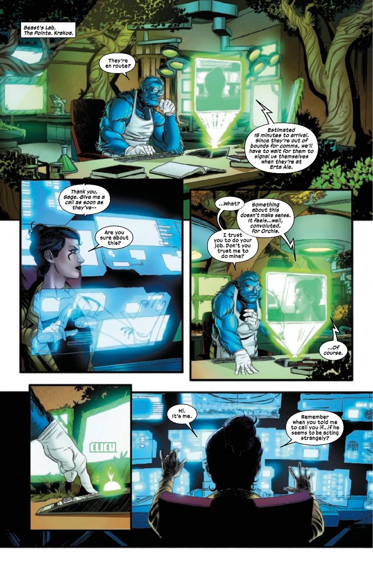 Lo que es particularmente inquietante es que X-Force participó recientemente en una serie de incursiones en la base satelital de Orchis, siendo asesinado repetidamente por Nimrod y luego resucitado en Krakoa. Se ha demostrado que la organización tiene un almacén de esqueletos de adamantium de Wolverine y que ha derrotado a Domino y Kid Omega muchas veces. Debería quedar poco por ganar de X-Force que no se haya logrado ya, por lo que es sospechoso que Orchis tenga la intención de atrapar al equipo una vez más, tal vez para revelar realmente lo que aprendieron de las muchas muertes de los héroes.